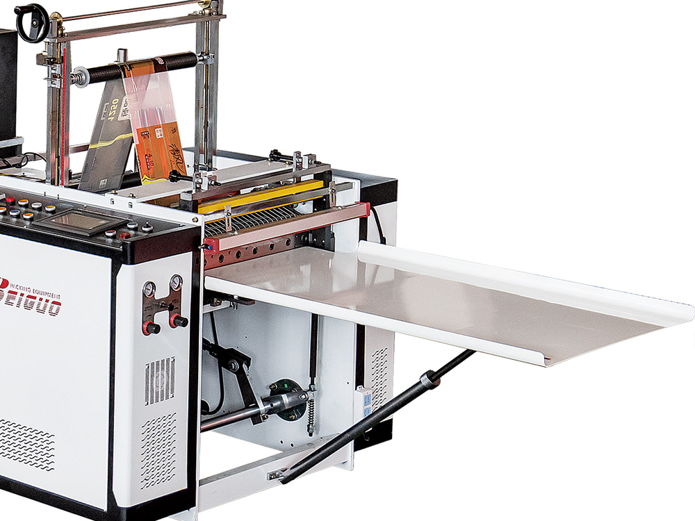 主要制作衛(wèi)生紙外包裝、生活用品包裝袋的設(shè)備。雙插邊制袋一體完成。